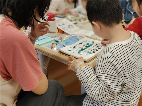 孩子们化身小小艺术家,以童心为笔、以色彩为墨,原本普通的麻布袋渐渐变得色彩斑斓,每一笔都承载着孩子们对生活的热爱、对未来的期望。